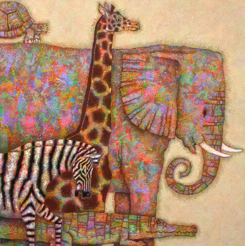 木製パネルにミックスメディア