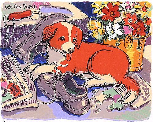 玄関でワン!