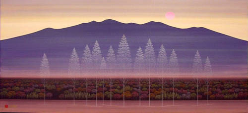 描いている風景には、それぞれイメージのもととなった場所があります。「白樹」などは奥日光です。高校野球で甲子園を目指していた頃、負けた翌朝に見た美しかった風景を思い出しながら描いたものです。あくまでもイメージで描いている心象風景なので、八ヶ岳をイメージしながら描いても、八ヶ岳そのものの形になることはありません。